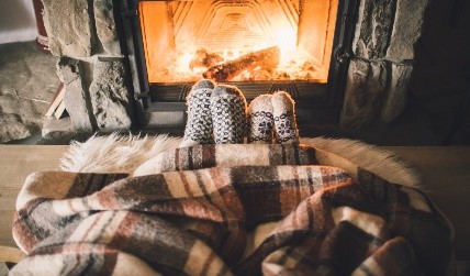 • слухати, як потріскують дрова в каміні;